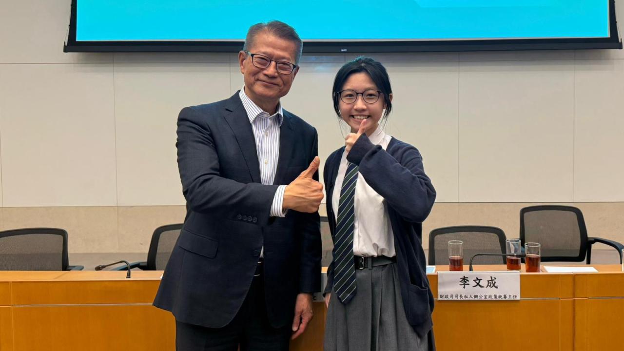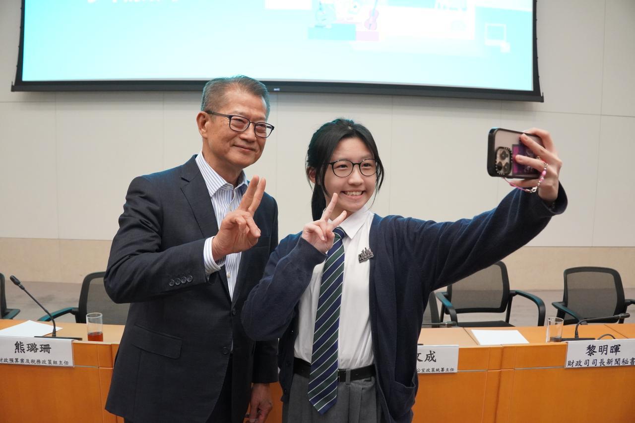On January 13, 2026, Hau-tung had the honour of meeting Mr. Paul Chan, the Financial Secretary of Hong Kong, at the Government Headquarters. During this meeting, she presented her insightful ideas and recommendations on the budget, reflecting the perspectives of today’s youth.
