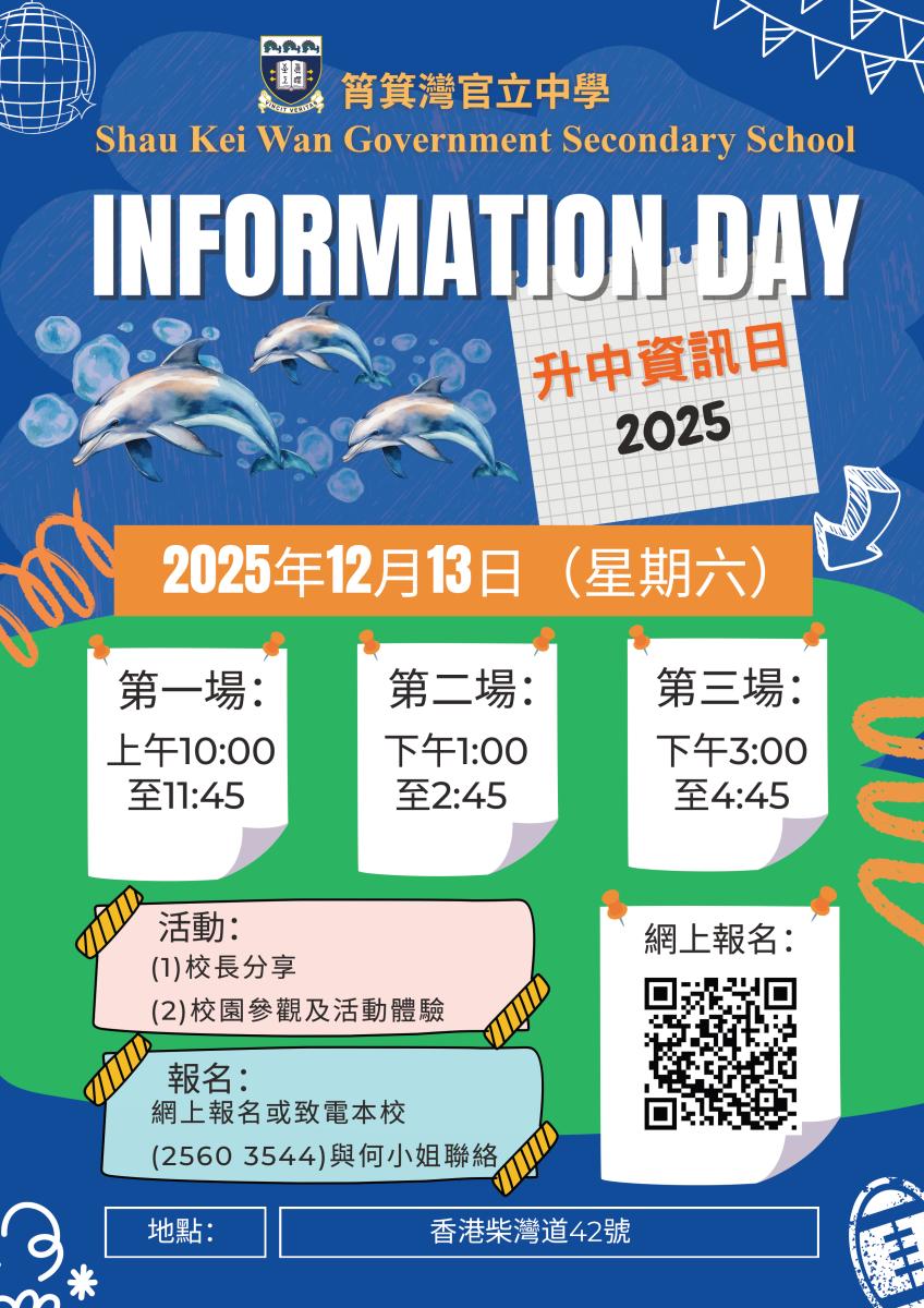 報名方法:掃描以下二維碼或 按此進行網上登記‚ 或致電本校 2560 3544 與何小姐聯絡及登記報名。
