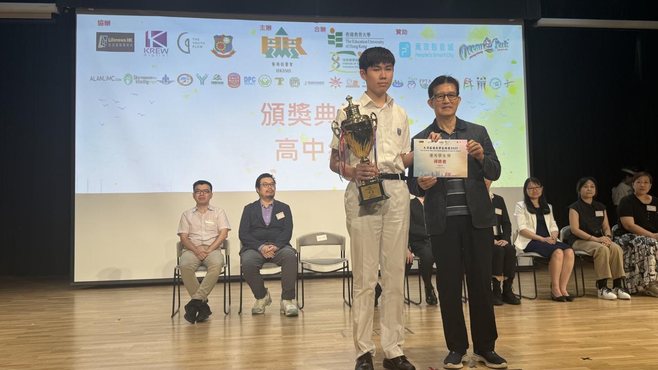 本校6D吳韋霖通過堅持不懈的學習和追求卓越的精神,奪得高中組季軍。