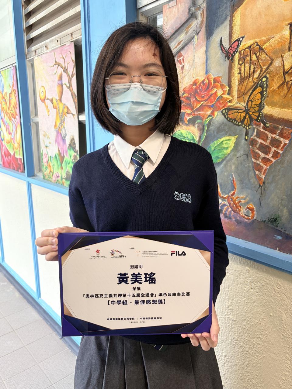 We are excited to announce that our school recently participated in the ‘Olympism and Welcoming the 15th National Games Coloring and Drawing Competition’(「奧林匹克主義共迎第十五屆全運會」填色及繪畫比賽). We are proud to highlight that Wong Mei Yiu from 5B (29) was awarded the Best Reflection Award. This prestigious recognition was awarded to only five students, showcasing her outstanding talent and creativity in a highly competitive field.